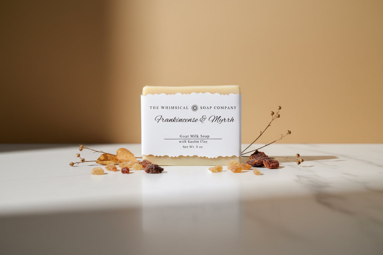 Frankincense & Myrrh goat milk soap infused with vitamin E, kaolin clay, and being chemical-free is a premium skincare product that embodies natural goodness and luxurious self-care. This soap is meticulously crafted to provide a gentle yet effective cleansing experience while nourishing and pampering the skin.