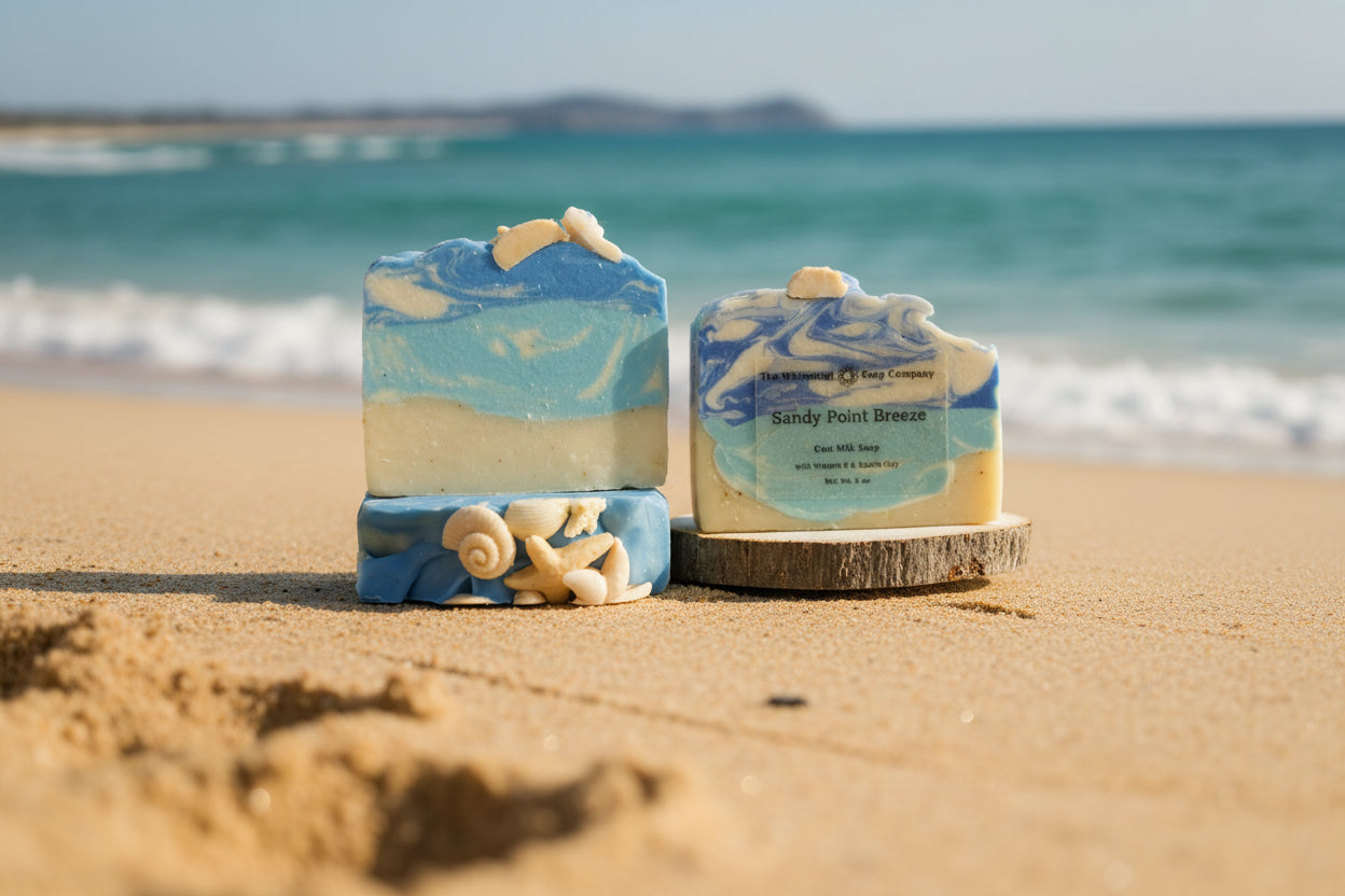 Crafted with care, Sandy Point Breeze is a tribute to the tranquility and serenity that Sandy Point Beach embodies. The soap's formulation features the finest ingredients, including creamy goat milk sourced from local farms, renowned for its moisturizing and skin-nourishing properties.